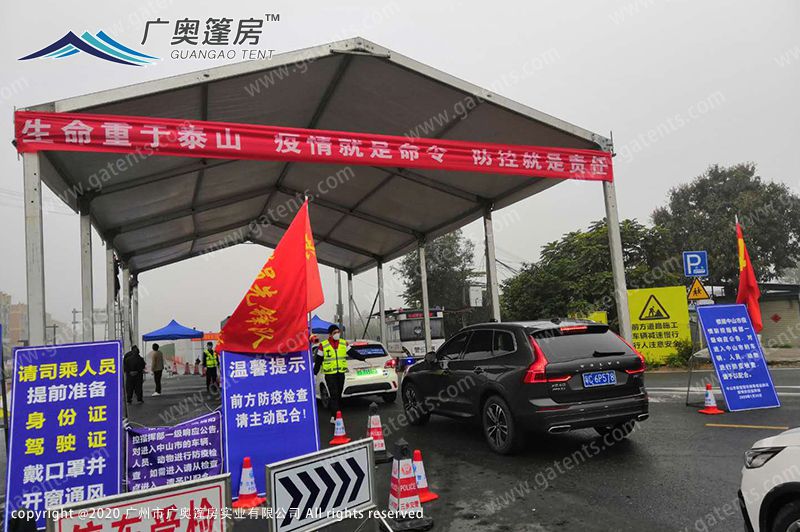 我國疫情期間,全國各地抗疫進行時,但少不了戶外檢疫工作,高速路上、各種牌坊進出口等等,檢疫工作妥善,是為人民服務(wù)中關(guān)鍵點。所以,搭建起篷房使用,能遮陽擋雨,保證了檢疫工作能順利進行。