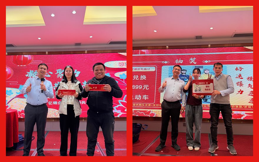 為感恩億錦家人們的長(zhǎng)期奉獻(xiàn)與風(fēng)雨同舟。接下來(lái)到激動(dòng)人心抽獎(jiǎng)環(huán)節(jié),特別推出四個(gè)口味禮品福利,分別是“新年好、睡得好、吃得好、用得好”。獎(jiǎng)品涵蓋有按摩儀、空氣炸鍋、生活用品棉被、烙餅鍋等等,最關(guān)鍵的是一等獎(jiǎng)豪華版電動(dòng)車。每個(gè)人都抱著期待的心情,能中到心儀的禮品?,F(xiàn)場(chǎng)歡呼一片,非常熱鬧。